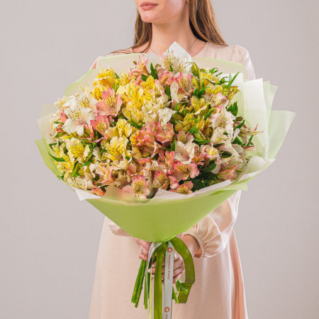 Альстромерия - 11 шт., Современная упаковка - 1 шт., Лента атласная - 1 шт.Доставка 0₽ от 30-ти минут