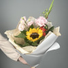 Современная упаковка - 1;Лента атласная - 1;Русскус отеч. - 4;Эустома - 2;Подсолнух - 1;Гладиолус - 1;