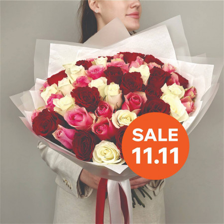 Букет из 35 фирменных роз микс